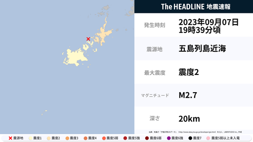 9月7日19時39分頃、長崎県で最大震度2の地震を観測