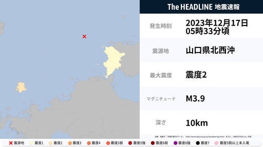 12月17日5時33分頃、長崎県で最大震度2の地震を観測