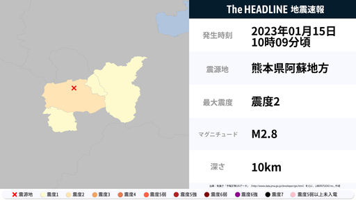1月15日10時9分頃、熊本県で最大震度2の地震を観測