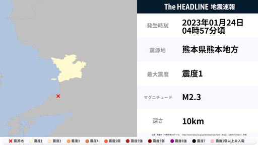 1月24日4時57分頃、熊本県で最大震度1の地震を観測
