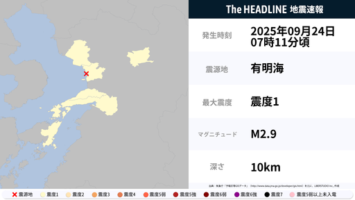 9月24日7時11分頃、熊本県で最大震度1の地震を観測