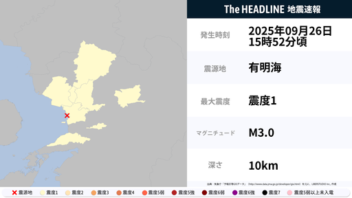 9月26日15時52分頃、熊本県で最大震度1の地震を観測