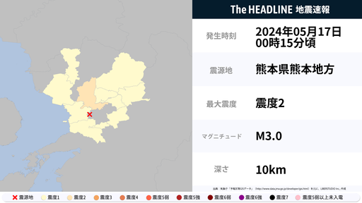 5月17日0時15分頃、熊本県で最大震度2の地震を観測