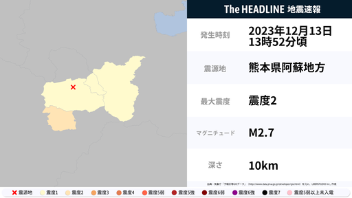 12月13日13時52分頃、熊本県で最大震度2の地震を観測