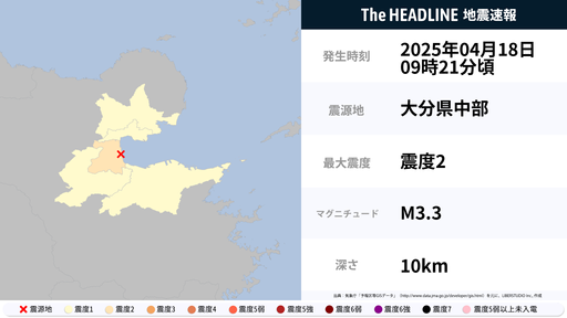 4月18日9時21分頃、大分県で最大震度2の地震を観測
