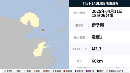 4月11日18時6分頃、大分県で最大震度1の地震を観測