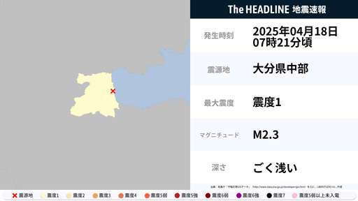 4月18日7時21分頃、大分県で最大震度1の地震を観測