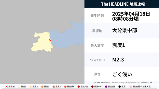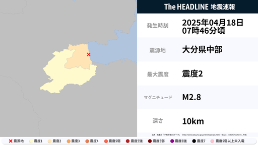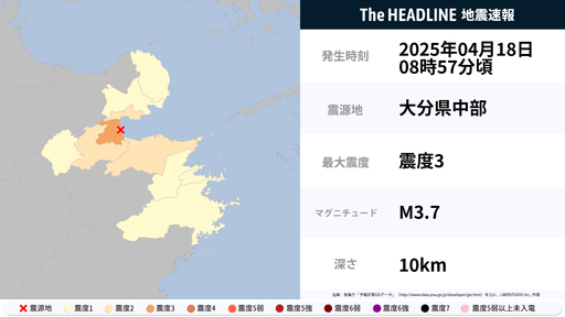 4月18日8時57分頃、大分県で最大震度3の地震を観測