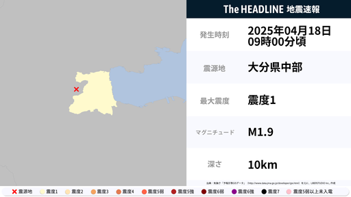 4月18日9時0分頃、大分県で最大震度1の地震を観測