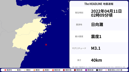 4月11日02時09分頃、大分県などで最大震度1を観測する地震がありました。