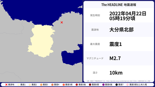4月22日05時19分頃、大分県で最大震度1を観測する地震がありました。