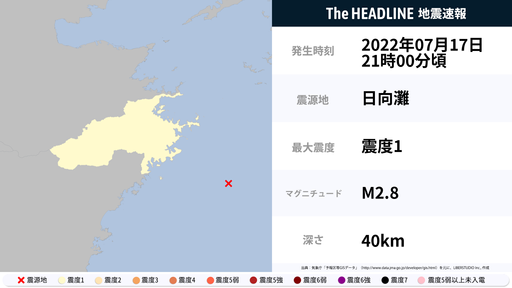 7月17日21時00分頃、大分県で最大震度1を観測する地震がありました。