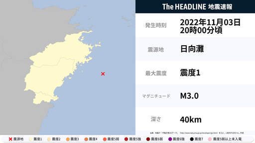 11月3日20時0分頃、大分県・宮崎県で最大震度1の地震を観測