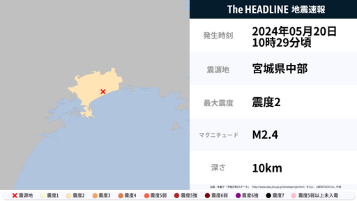 5月20日10時29分頃、宮城県で最大震度2の地震を観測