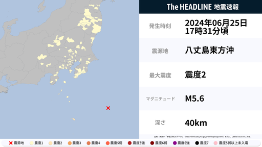 6月25日17時31分頃、東京都で最大震度2の地震を観測