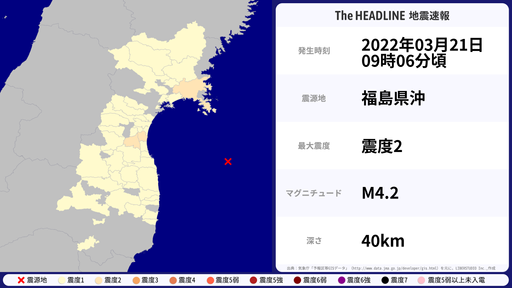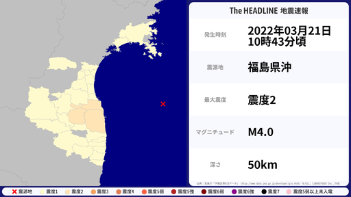 3月21日10時43分頃、福島県で最大震度2を観測する地震がありました。
