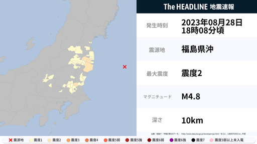 8月28日18時8分頃、福島県・茨城県で最大震度2の地震を観測