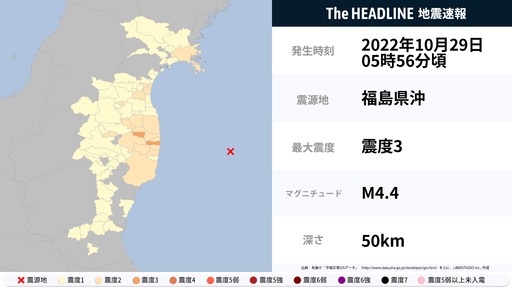 10月29日5時56分頃、福島県で最大震度3の地震を観測