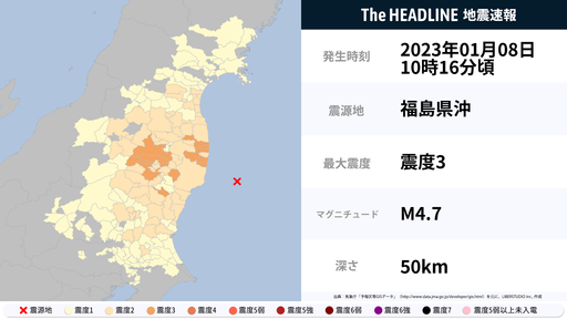 1月8日10時16分頃、福島県で最大震度3の地震を観測