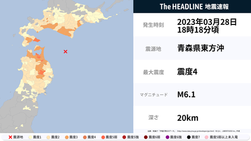 3月28日18時18分頃、北海道・青森県などで最大震度4の地震を観測