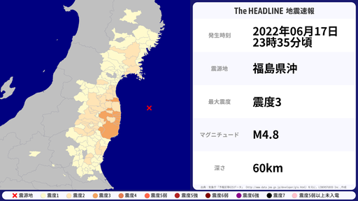 6月17日23時35分頃、福島県で最大震度3を観測する地震がありました。