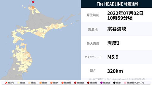 7月2日11時00分頃、北海道などで最大震度3を観測する地震がありました。