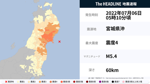 7月6日05時10分頃、岩手県などで最大震度4を観測する地震がありました。