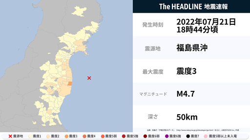 7月21日18時44分頃、福島県で最大震度3を観測する地震がありました。
