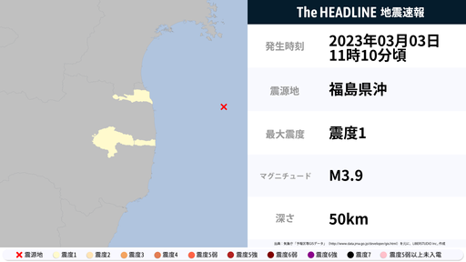 3月3日11時10分頃、福島県で最大震度1の地震を観測