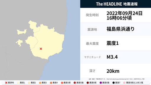 9月24日16時6分頃、福島県で最大震度1の地震を観測