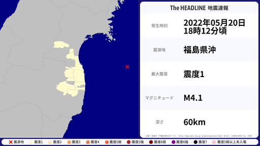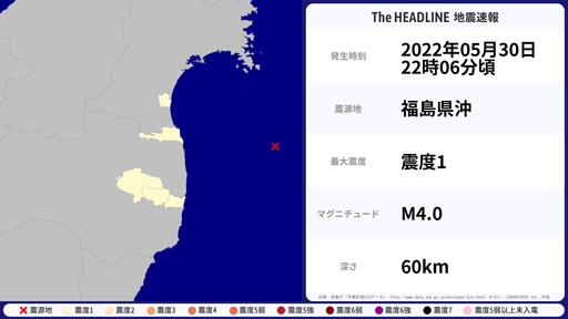 5月22日12時24分頃、福島県で最大震度5弱を観測する地震がありました。
