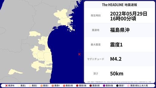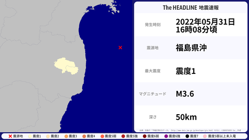 5月31日16時08分頃、福島県で最大震度1を観測する地震がありました。
