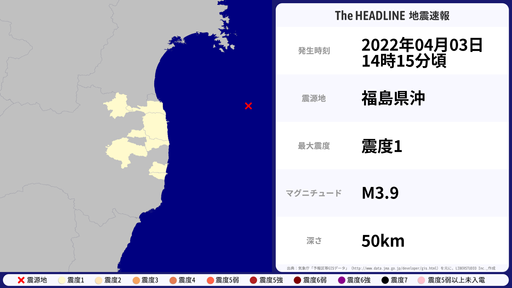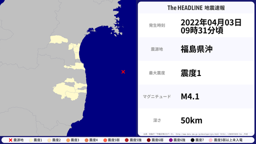 4月3日06時28分頃、福島県で最大震度1を観測する地震がありました。