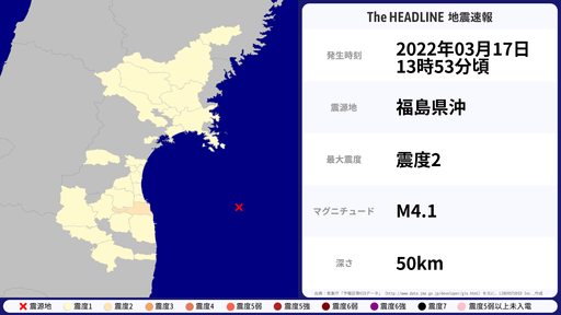 3月17日13時53分頃、福島県で最大震度2を観測する地震がありました。