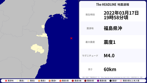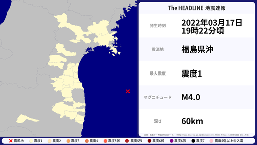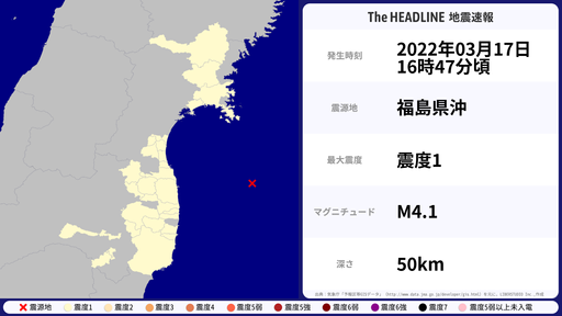 3月17日21時30分頃、福島県で最大震度3を観測する地震がありました。