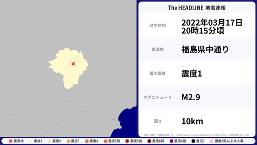 3月17日20時15分頃、福島県で最大震度1を観測する地震がありました。