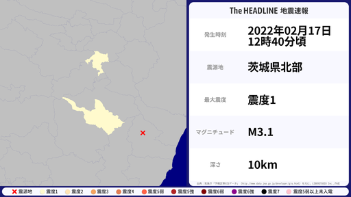 2月21日10時12分頃、茨城県で最大震度3を観測する地震がありました。