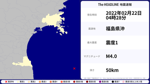10月22日3時48分頃、福島県で最大震度1の地震を観測