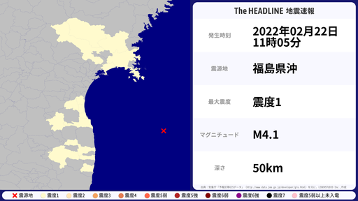 2月22日11時05分頃、宮城県などで最大震度1を観測する地震がありました。