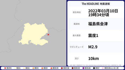 3月10日19時34分頃、福島県で最大震度1を観測する地震がありました。