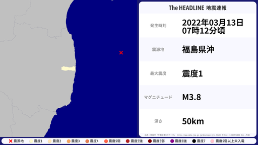 3月13日07時12分頃、福島県で最大震度1を観測する地震がありました。