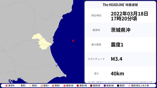 3月18日17時20分頃、茨城県で最大震度1を観測する地震がありました。