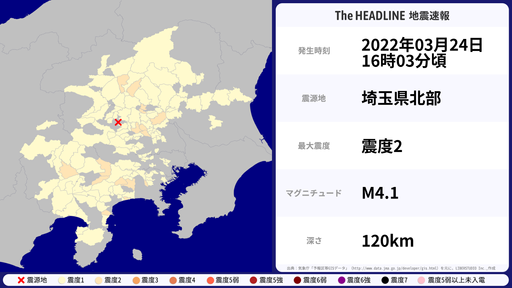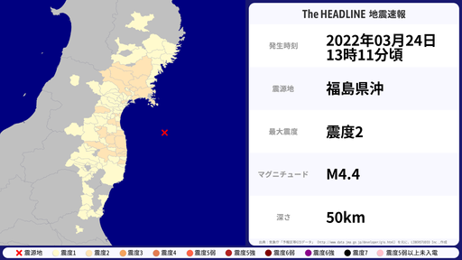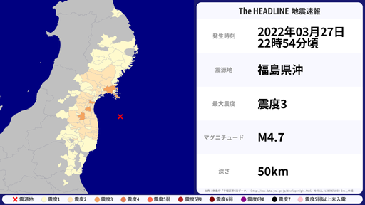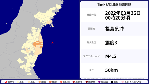 3月26日00時20分頃、福島県で最大震度3を観測する地震がありました。