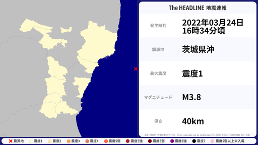 3月30日03時39分頃、茨城県で最大震度1を観測する地震がありました。