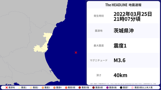 3月25日21時07分頃、茨城県で最大震度1を観測する地震がありました。