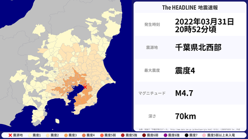 3月31日20時52分頃、千葉県で最大震度4を観測する地震がありました。