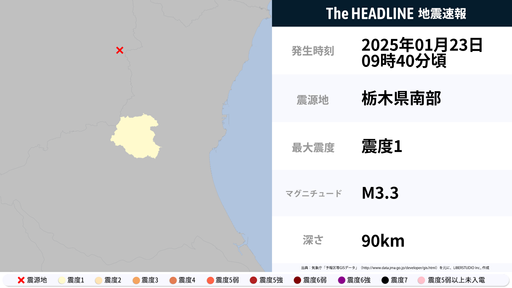 10月26日12時7分頃、栃木県で最大震度3の地震を観測