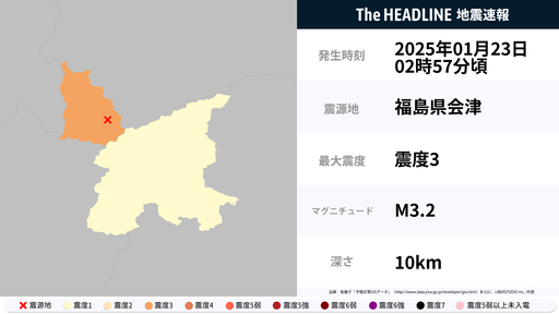 1月23日2時57分頃、福島県で最大震度3の地震を観測