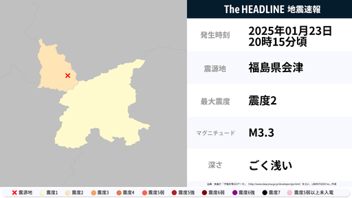 1月23日20時15分頃、福島県で最大震度2の地震を観測