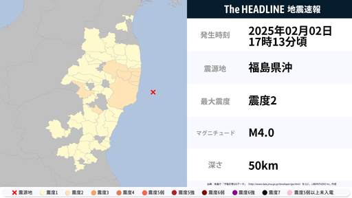 2月2日17時13分頃、福島県で最大震度2の地震を観測